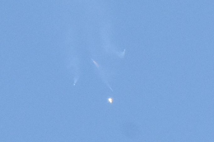 打上げ後、低い位置の雲を通過した後、青空に駆け上がっていきました。