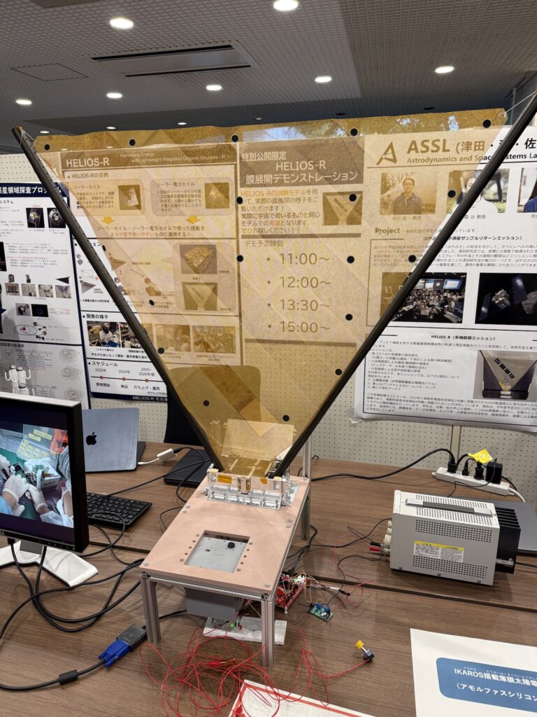 以下は2025年10月11日にJAXA相模原キャンパスの特別公開で展示されたHELIOS-R 膜展開デモンストレーションの様子